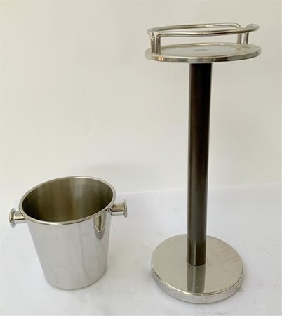 Colonnina con cestello in acciaio portaghiaccio. Crusinallo di Omegna, secolo XX. Marcato sotto la base. (h cm 81) (lievi difetti)