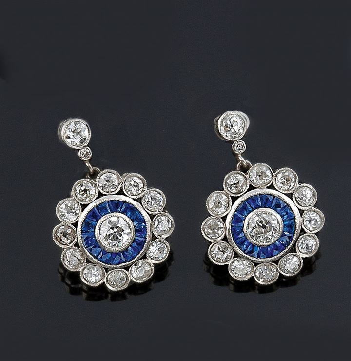 Coppia di orecchini in platino, inizio XX secolo, con diamanti taglio brillante di vecchio taglio