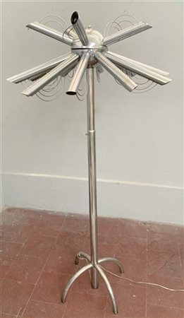 Lampada da terra ready made tipo "Sputnik" ad altezza regolabile in metallo cromato a quindici luci su doppio ordine. Anni '90/2000. (h max cm 182) (lievi difetti)