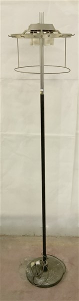 Lampada da terra con fusto in metallo verniciato nero, base in ghisa. Italia, anni '70. (h cm 155) (lievi difetti e mancanze)