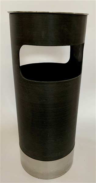 Portaombrelli con base in alluminio, struttura in plastica nera satinata. Italia, anni '70/'80. (h cm 60; d cm 25)