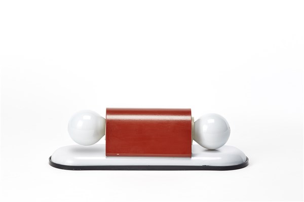 Lampada da parete a due luci in metallo laccato bianco e rosso. Italia, anni '80. (l cm 27) (lievi difetti)