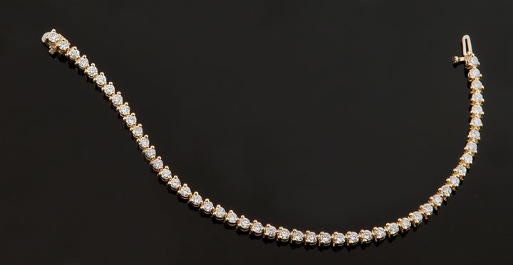 Bracciale in oro giallo, modello tennis, con quarantanove diamanti taglio brillante per