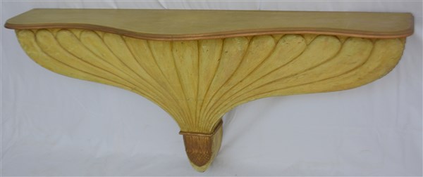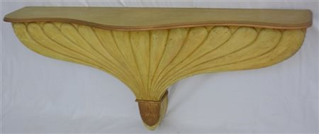 Mensola a muro in legno laccato e dorato con sostegno decorato da una ghianda con ampio cespo baccellato (cm 137x56x28) (difetti)