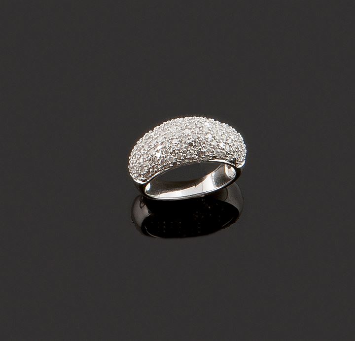 Lot 683 | ANELLO Anello in oro bianco, a fascia, sommità con pavè di diamanti taglio...