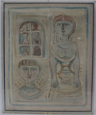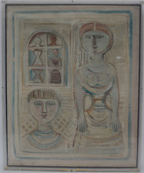 Riproduzione di un'opera di Massimo Campigli cm 76x63 In cornice di plexiglass