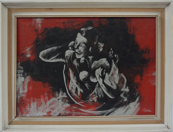 Firma indecifrata "Figura" olio su tela cm 50x70 Firmato in basso a destra. In