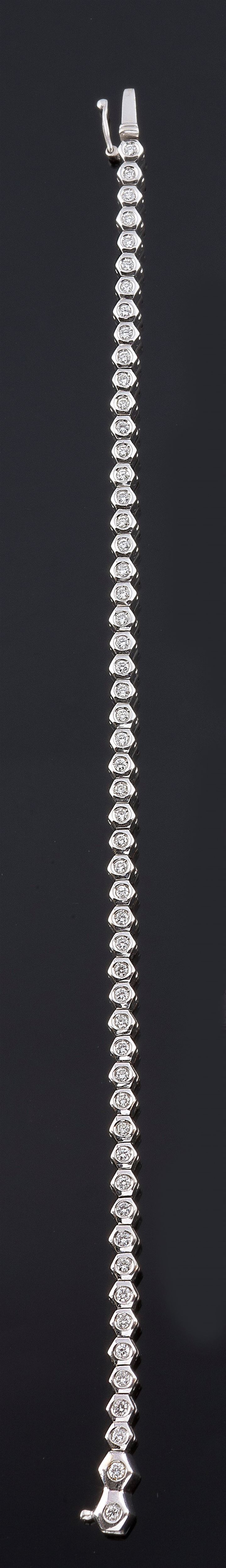Bracciale in oro bianco, modello tennis, composto da cinquantatrè diamanti taglio brillante