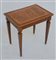 Tavolino da salotto con gambe rastremate e piano decorato con piccoli intarsi (