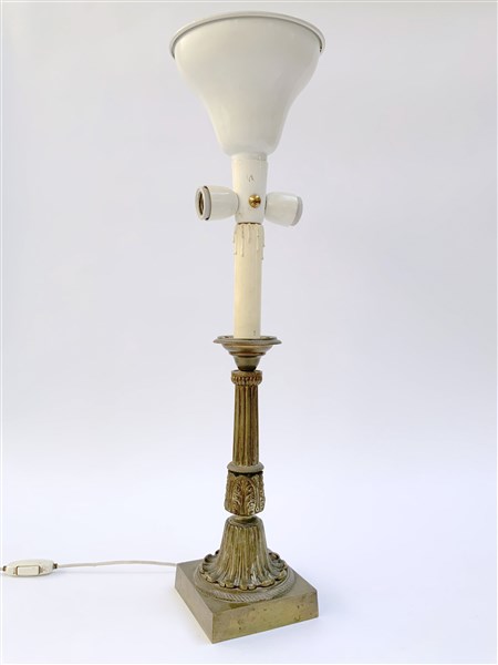 Lampada da tavolo a tre luci, in bronzo con fusto a colonna (h tot cm 70) (difetti)
