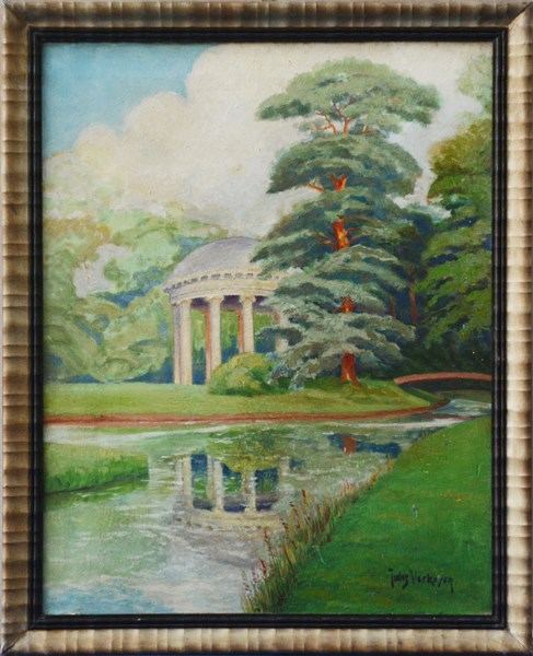 Jules Verkoyen "Scorcio di giardino" olio su cartone pressato (cm 57x45) Firmato