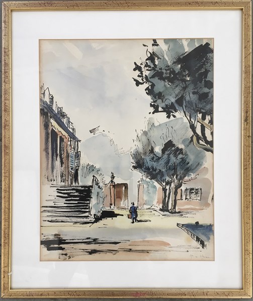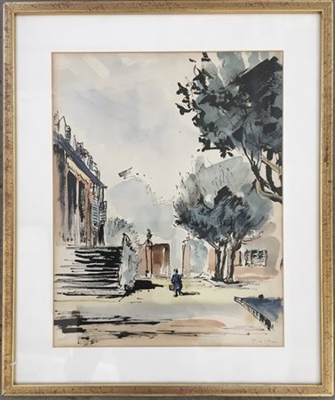 Firma indecifrata "Scorcio di giardino" tecnica mista su carta (cm 37.5x29) Firmato in basso a destra. In cornice