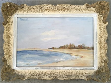 Firma indecifrata "Marina" olio su masonite (cm 22x33) Firmato in alto a sinistra. In cornice
