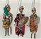 Gruppo di tre pupi siciliani raffiguranti un paladino e due pagani. Armature in