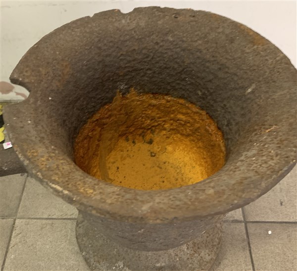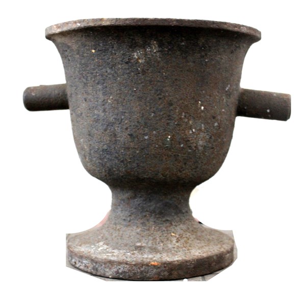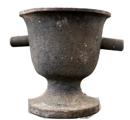 Antico mortaio biansato in ferro (h cm 32) (difetti e mancanze)
