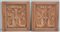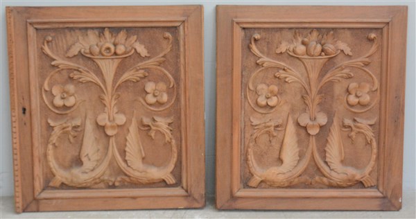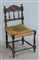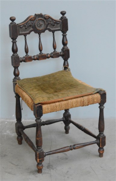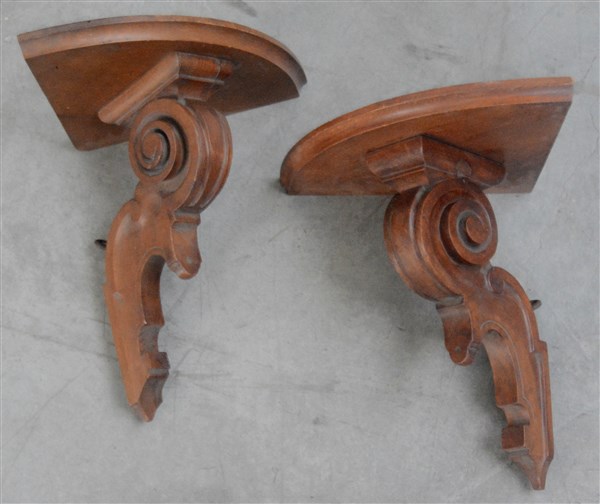 Lotto composto da una seggiolina impagliata, due mensole ad angolo e due ante in legno intagliato (difetti)
