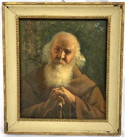Ignoto del secolo XIX "Ritratto di frate" olio su tela (cm 50x43) In cornice (