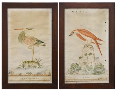 Pietro cattaneo "L'avvoltoio" e "L'Ardea Stellare" 1817 coppia di acquarelli (cm 52x31) firmati e datati, in cornici (difetti e mancanze)