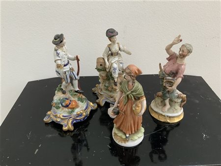 Lotto di quattro figure in porcellana Sec.XX (h.max cm 21) (difetti e restauri)