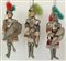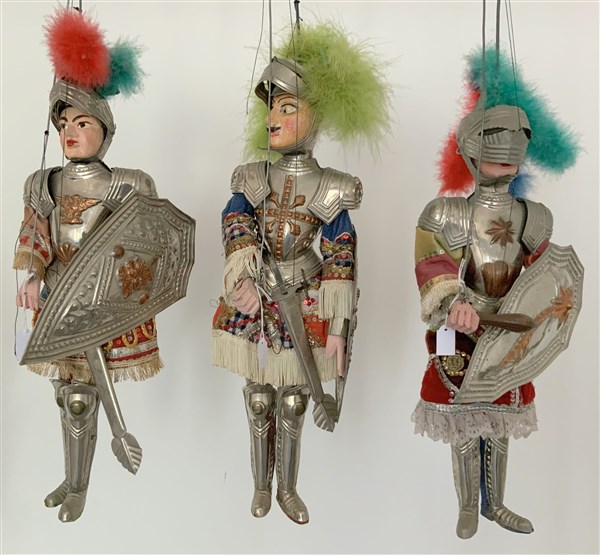 Gruppo di tre pupi siciliani raffiguranti i paladini Orlando, Ruggero di Risa e