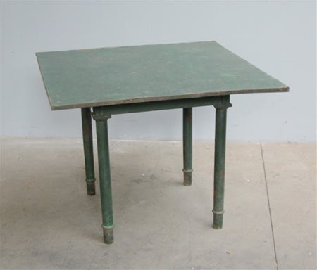 Tavolo con piano quadrato in ferro verniciato verde (cm 100x75x100) (difetti)