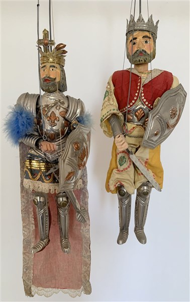 Lotto di due pupi siciliani raffiguranti Carlo Magno in tenuta normale e con ar
