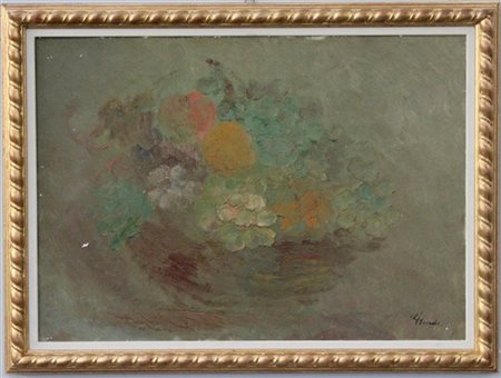 Firma indecifrata "Cesta di frutta" olio su tela (cm 48x70) Firmato in basso a destra. In cornice
