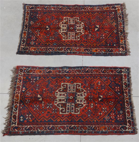Due tappeti Shiraz, Persia, secolo XX. Decoro con piccolo medaglione bianco su