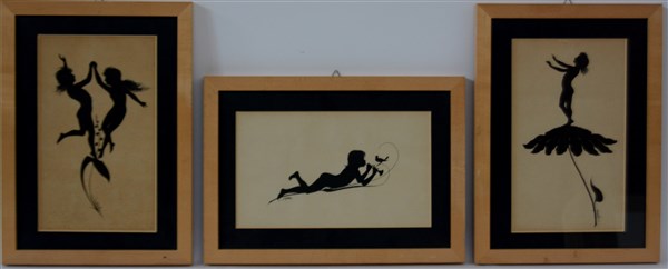Firma indecifrata, gruppo di tre silhouette con Libery(cm 27x16), in cornici