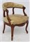 Poltrona in legno con schienale, gambe e braccioli intagliati di forma mossa. S