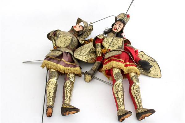 Coppa di pupi siciliani con armature in lamiera e tessuto (h cm 62) (difetti)