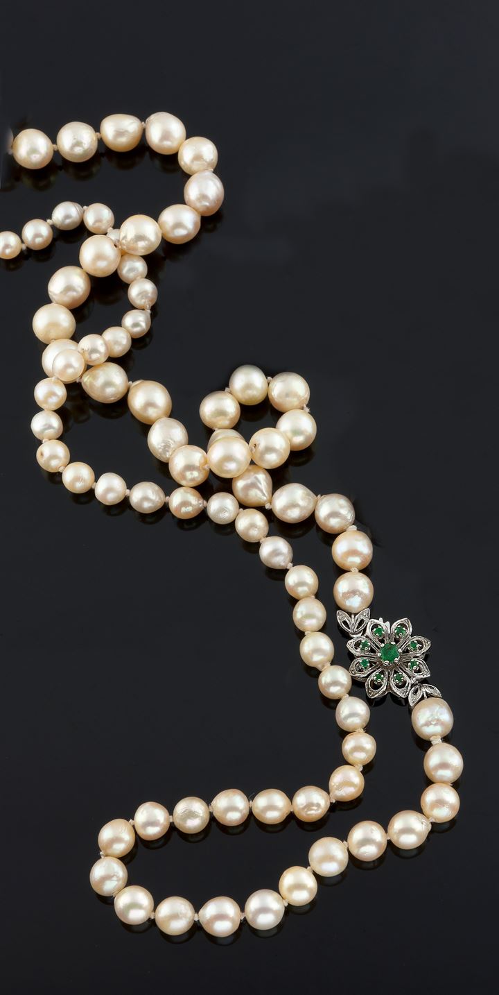 COLLANA DI PERLE Lunga collana di perle dal diam di mm 6,2 a 9,8; chiusura in...