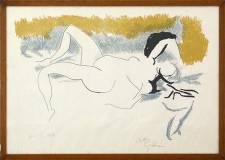 Renato Guttuso "Nudo" litografia a colori, cm 46x66 Firmata, dedicata e iscritta