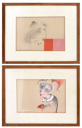 Michel Potier Lotto di due tecniche miste su carta, cm 18x26 Firmati e datati 19