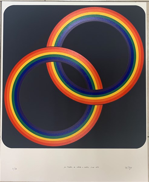 Lucio Del Pezzo "Senza titolo" litografia a colori, cm 59,5x48,5 Firmata, dedica