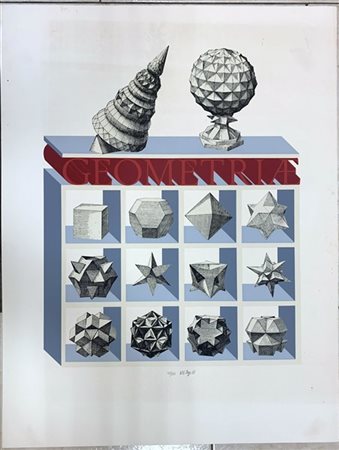 Lucio Del Pezzo "Geometriae" 1969 litografia a colori, cm 64,5x49 Firmata, datat