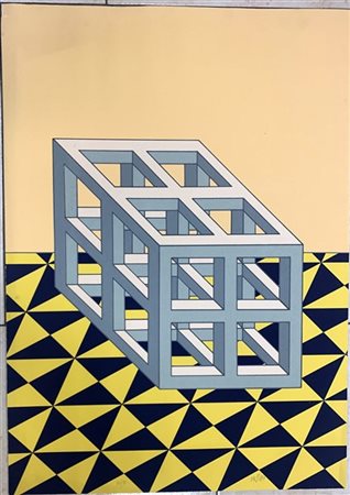 Lucio Del Pezzo "Senza titolo" litografia a colori su cartoncino, cm 70x49,5 Fir