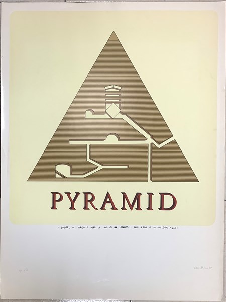 Lucio Del Pezzo "Pyramid" 1969 litografia a colori, cm 69x52 Firmata, datata e n
