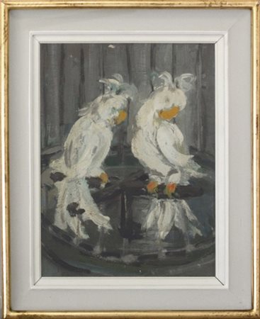 Ignoto "Pappagalli" olio su tavola, cm 42x33. In cornice (difetti) Provenienza