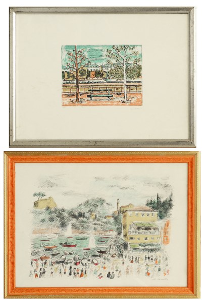 lotto composto da due litografie a colori raffiguranti paesaggi