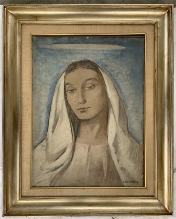 Silvio Consadori "Madonna" tecnica mista su tela gessata cm 58x43 Firmato in ba