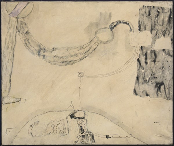 Mario Raciti "Per un viaggio spaziale (divertimento 28)" 1965 tecnica mista su c
