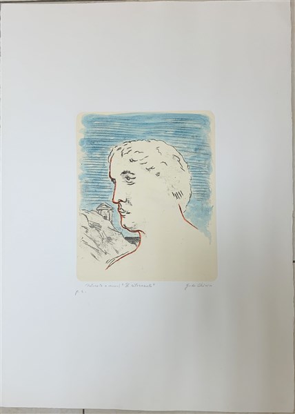 Giorgio de Chirico "Il ritornante" 1974 incisione colorata a mano (lastra cm 29,