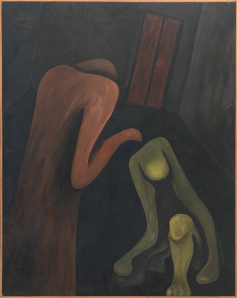 Corsi Pierluigi "Lo zio. Il processo" 1966 olio su tavola cm 100x81,5 Firmato, t