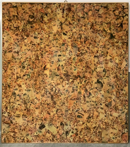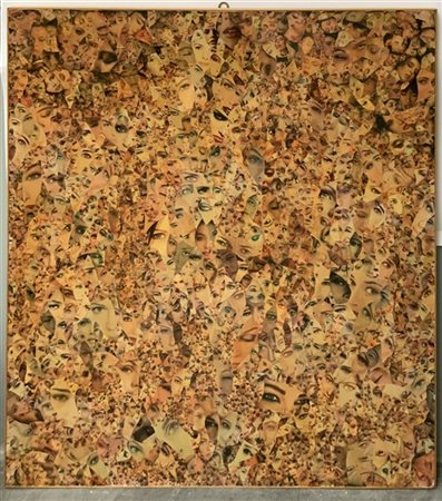 Franco Stellini "5000 visi" 1998 collage su masonite cm 130x117. In cornice (dif