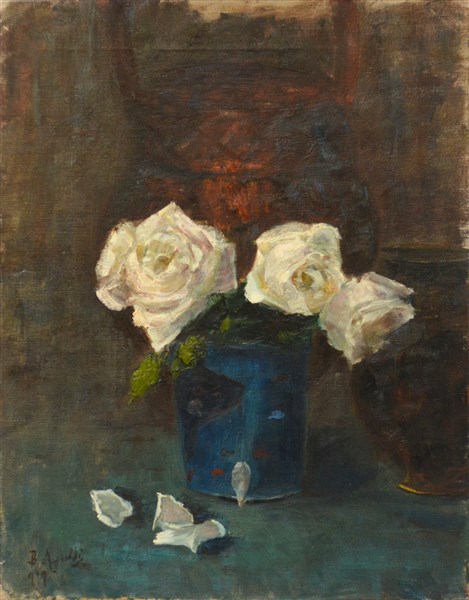 Ignoto "Vaso con rose" 1919 olio su tela cm 54x42 firmato B. Ajroldi e datato in