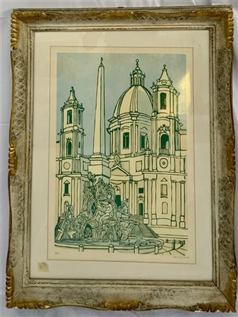 Aldo Di Castro "Senza titolo" 1977 litografia a colori cm 65x45 Firmata e numera