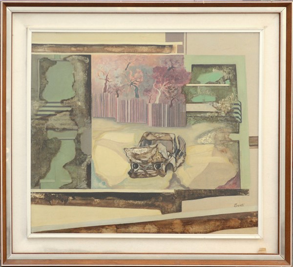 firmato in basso a destra; firmato, titolato ed etichette al retro. In cornice (difetti)
