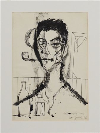 Firma indecifrata "Senza titolo" 1958 inchiostro su carta cm 42x29,5 firmato, is