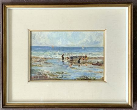 "Marina" olio su cartone (cm 20x27) Frmato in basso a sinistra. In cornice